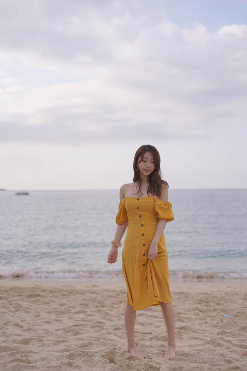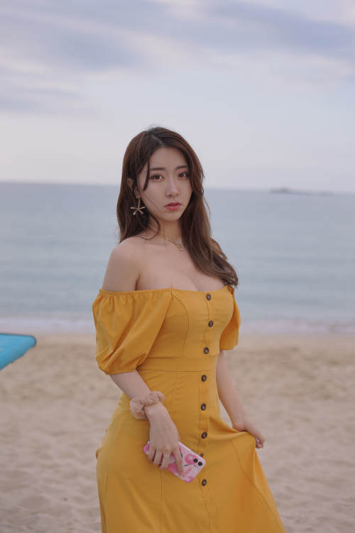 人气Coser黑川 – 海岛之旅 黄色连衣裙 / 19P